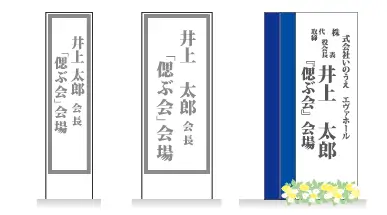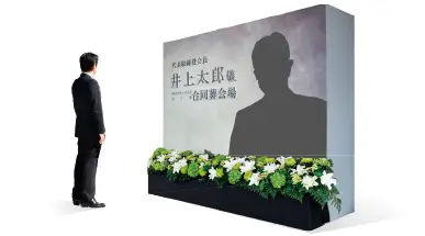 メモリアルパネルは、故人のお写真や沿革または、会社概要や理念等を自由にレイアウト可能な、建て込み式のメモリアルコーナーです。故人の軌跡や会社の歴史などを表現し、セレモニーを演出するアイテムの1つです。